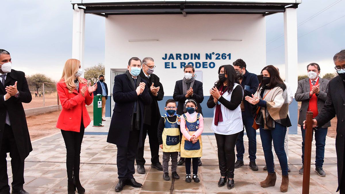 También se construyó el jardín de infantes N° 261 de una sala con sanitarios para alumnos y docentes de 65 m2 con una galería cubierta de 20 m2 y patio de formación, todo fue construido con materiales tradicionales y sistema antisísmico, con cubierta de chapa, cielorraso de PVC, pisos de graníticos y aberturas de aluminio.