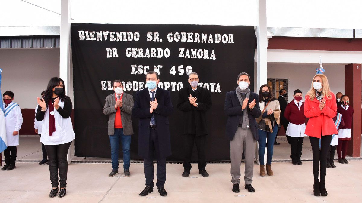 El Gobernador de la Provincia, Dr. Gerardo Zamora inauguró la refacción, remodelación y ampliación de la Escuela N° 450, el nuevo edificio del Jardín de Infantes N° 261 anexo a la escuela en la localidad del Rodeo y también entregó 25 viviendas sociales ubicadas en el departamento Choya. Asimismo dejó habilitado un mejoramiento del camino provincial que une Laprida – Puente de Chávez – La Laguna- Choya con una extensión de 14 kilómetros.