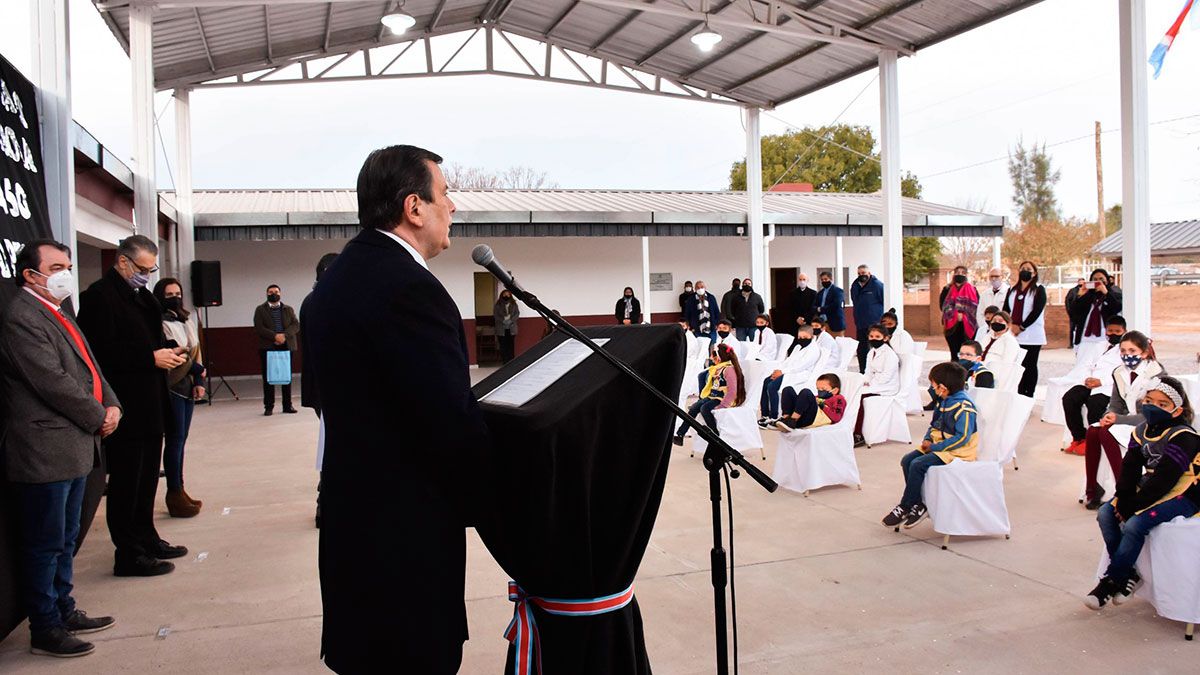 A su turno, el gobernador manifestó su alegría por estar en El Rodeo y agradeció el recibimiento. Destacó que la escuela es el lugar que “nos reúne, el que nos hace iguales a todos y el que genera en este presente el esfuerzo y la vocación para prepararnos hacia el futuro, con la esperanza puesta en nuestros niños y jóvenes”.