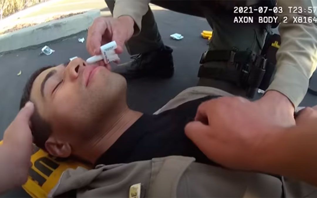 El Departamento del Sheriff del condado de San Diego (California, EE.UU.) ha difundido imágenes que recogen el momento en que uno de sus agentes se desmaya súbitamente tras quedar expuesto a una potente droga sintética conocida como fentanilo, quedando al borde de la muerte.