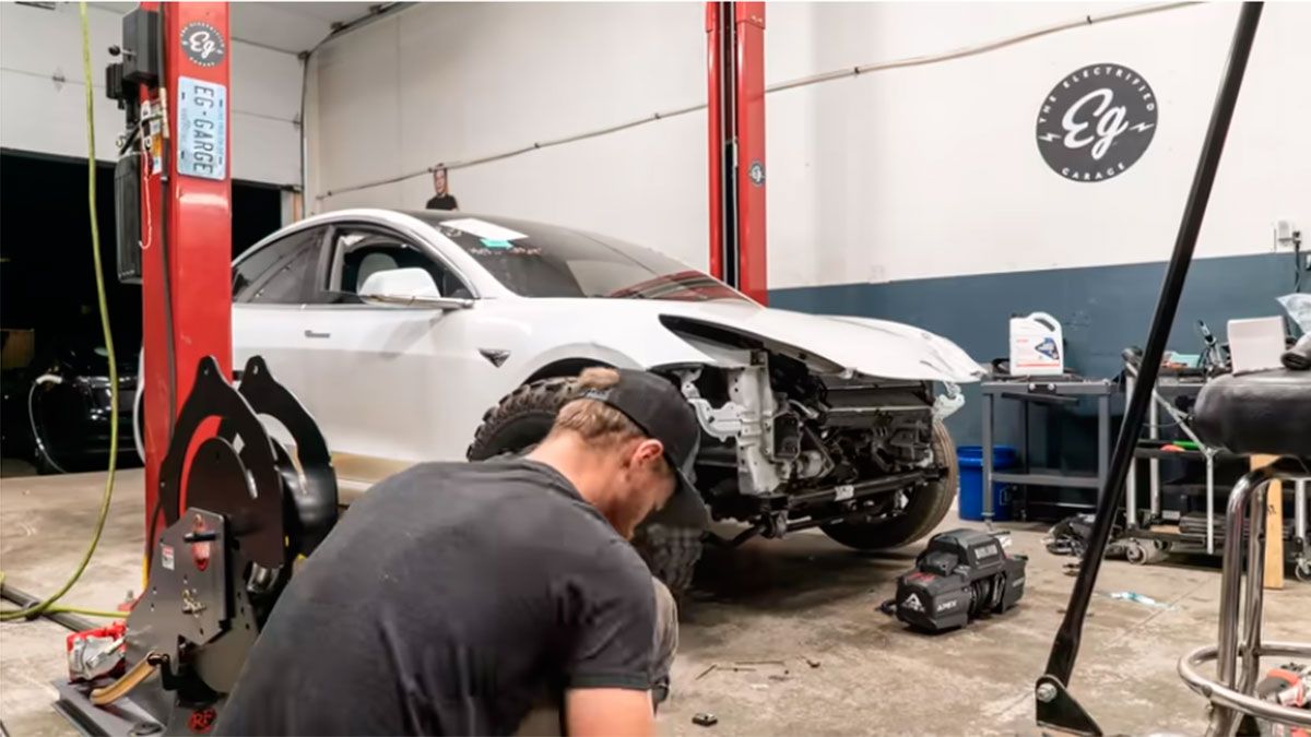 Un grupo de mecánicos convirtieron un Tesla Model 3 que sufrió graves daños en un accidente en un todoterreno eléctrico. Un video publicado en el canal de YouTube Grind Hard Plumbing Co. muestra el proceso y resultado de la modificación del automóvil, con motor dual.