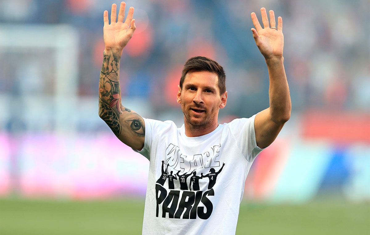 Lionel Messi fue presentado ante los hinchas de París Saint-Germain en la previa al partido con Racing de Estrasburgo, por la segunda fecha de la Ligue 1, y las tribunas del Parque de los Príncipes estallaron.
