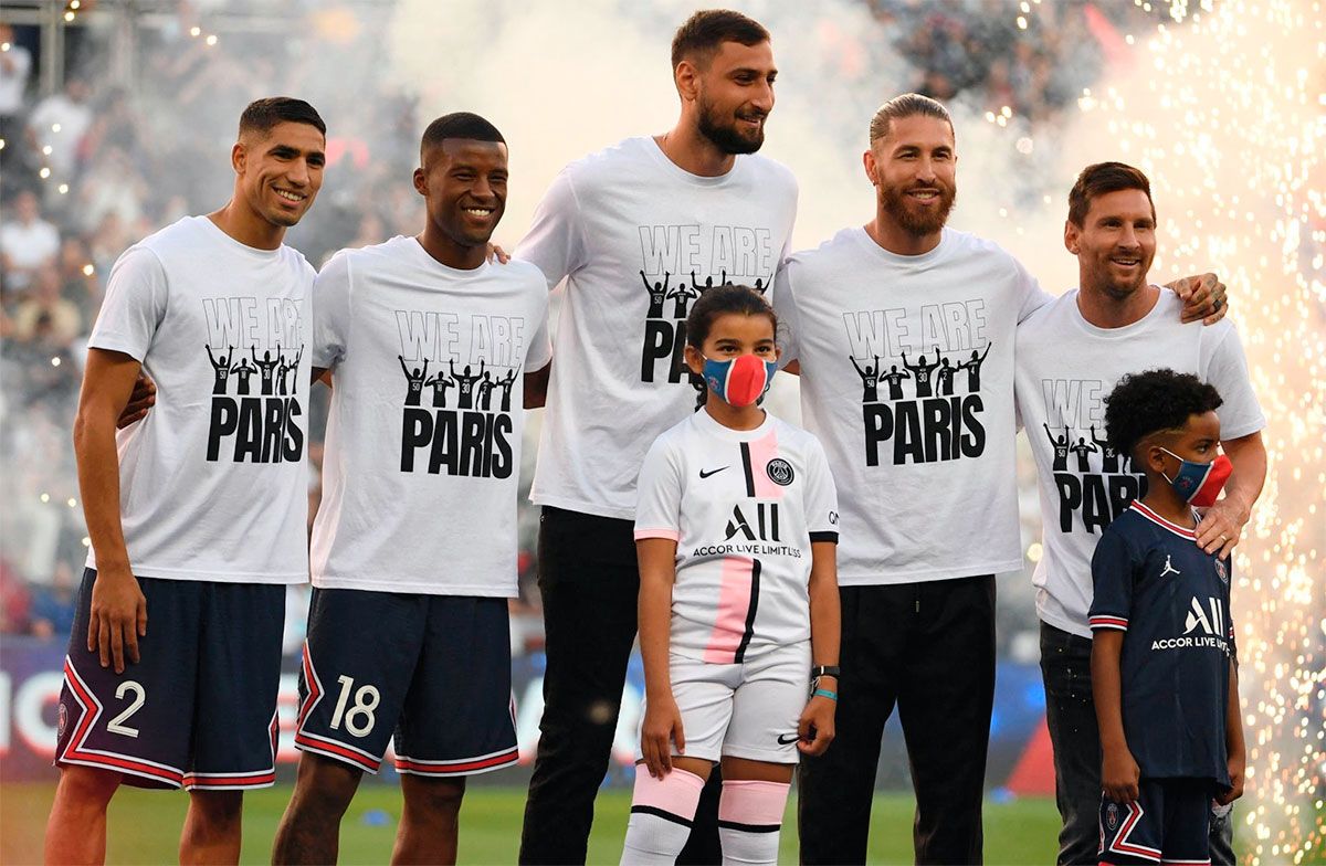 El ex-Barcelona saltó al campo junto con los otros refuerzos Achraf Hakimi, Georginio Wijnaldum, Gianluigi Donnarumma -reciente campeón con Italia de la Eurocopa- y Sergio Ramos -excapitán de Real Madrid-.