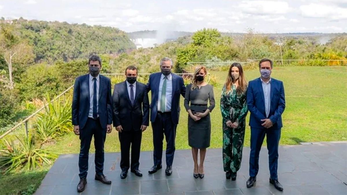 "Estamos en un Parque Nacional único en el mundo. Fabiola estuvo con su madre y sus hermanas no hace mucho tiempo atrás en este hotel y me decía: 'Vos tenes que ver cómo se ven las Cataratas'. Yo decía, 'está exagerando', como ella quiere mucho a Misiones, dije está exagerando, me debe estar macaneando", contó entre risas el Presidente mientras la transmisión oficial ponía en pantalla a la primera dama, con barbijo, en la primera fila del auditorio.
