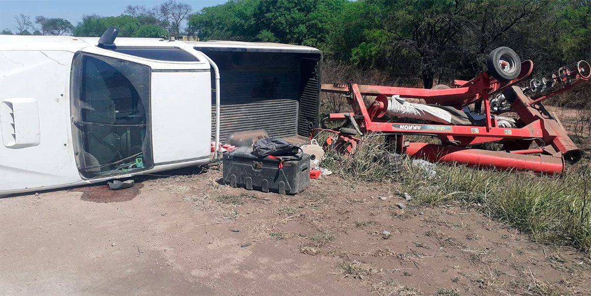 Transportaban una máquina agrícola que sufrió el reventón de un neumático, lo cual provocó el accidente a pocos kilómetros de Quimilí.