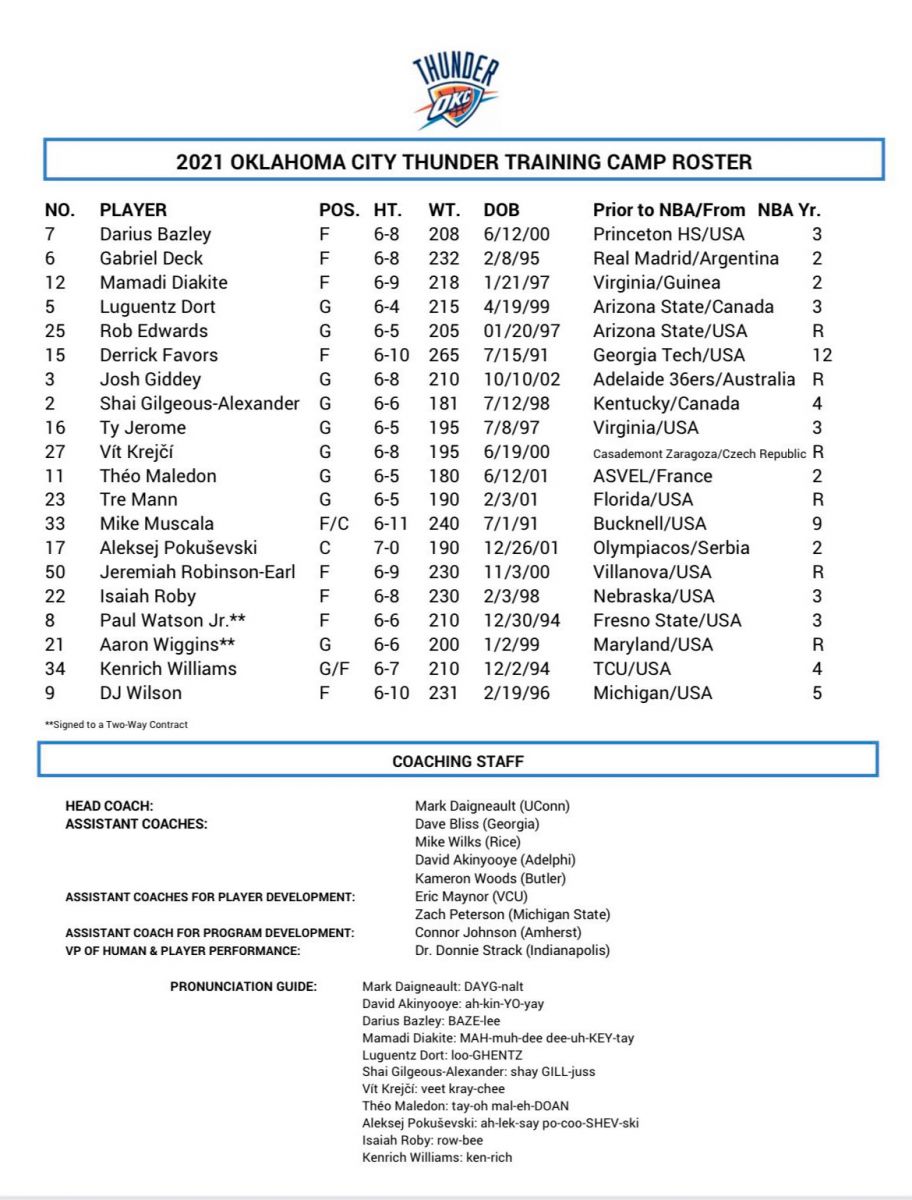 La fase regular de la NBA comenzará el 19 de octubre y el primer partido para Oklahoma City Thunder será el 20 ante Utah Jazz como visitante.