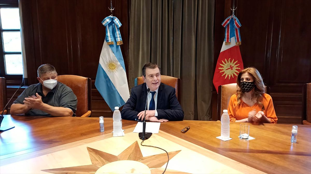 Junto al gobernador estuvo la senadora Claudia de Zamora y el secretario general de la CGT en la provincia, José Gómez. Además participaron del anuncio el jefe de Gabinete Elías Suárez y el senador Gerardo Montenegro.