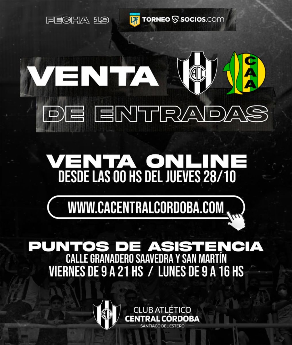 Central Córdoba informó los precios como así también los días y horarios para la venta de entradas de cara al partido del próximo lunes ante Aldosivi por la 19ª fecha de la Liga Profesional, que se disputará en el Estadio Único.