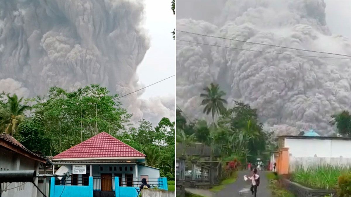 Vecinos de la población de Lumajang han huido a toda prisa mientras a sus espadas avanzaba una enorme nube de humo y ceniza, según uno de los videos publicados en las redes sociales por los testigos de la explosión del Semeru, de 3.676 metros del altura y uno de los volcanes más activos del país.