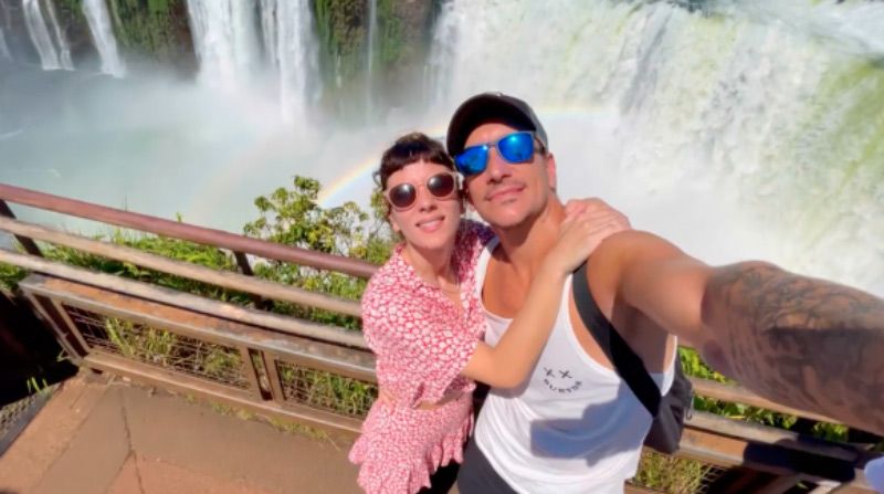 Recién llegados al paraíso natural, que se localiza sobre el río Iguazú, en el límite entre la provincia argentina de Misiones y el estado brasileño de Paraná, ambos compartieron divertidas fotos disfrutando de esta espectacular geografía.