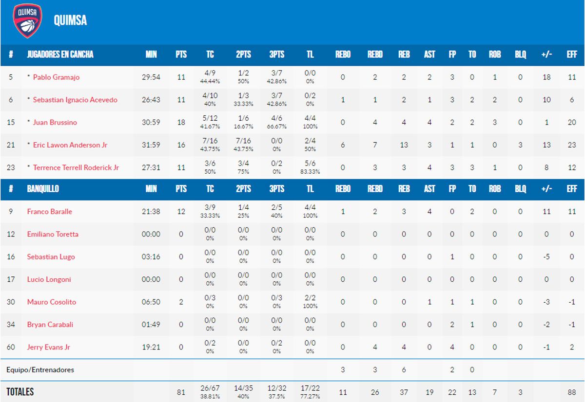 Sin embargo, Quimsa reaccionó a tiempo para sacar adelante un partido complicado y que había comenzado de la peor manera.