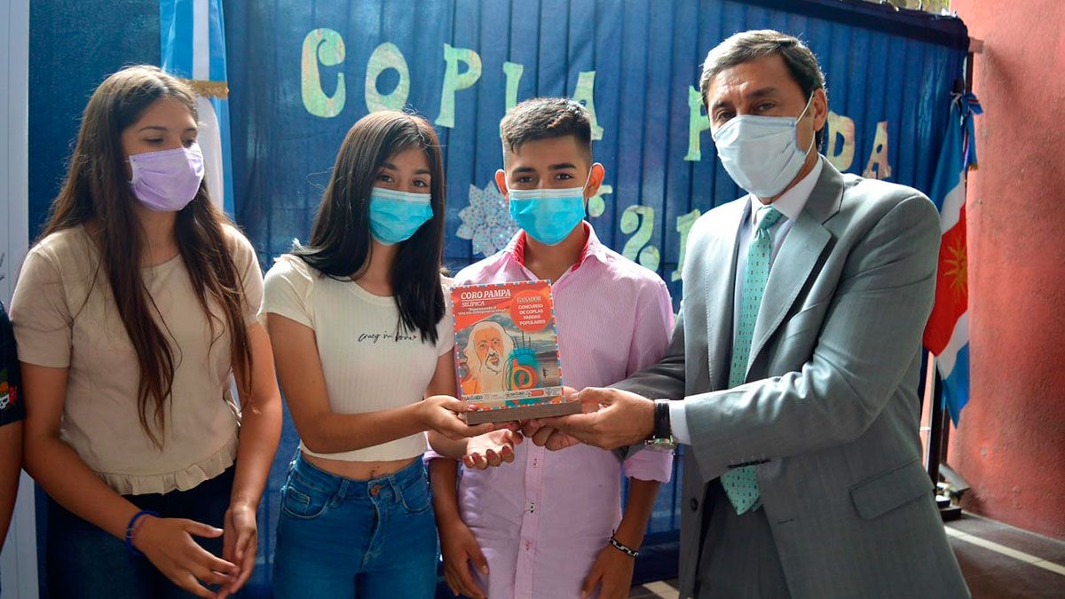 El vicegobernador de la provincia y la presidenta del Consejo General de Educación, Dra. María Elena Herrera y Dardo del Valle Gómez (h), participaron de la entrega de los Premios Copla Parda Sabiduría Encarnada 2021 a alumnos y docentes que participaron en este concurso.
