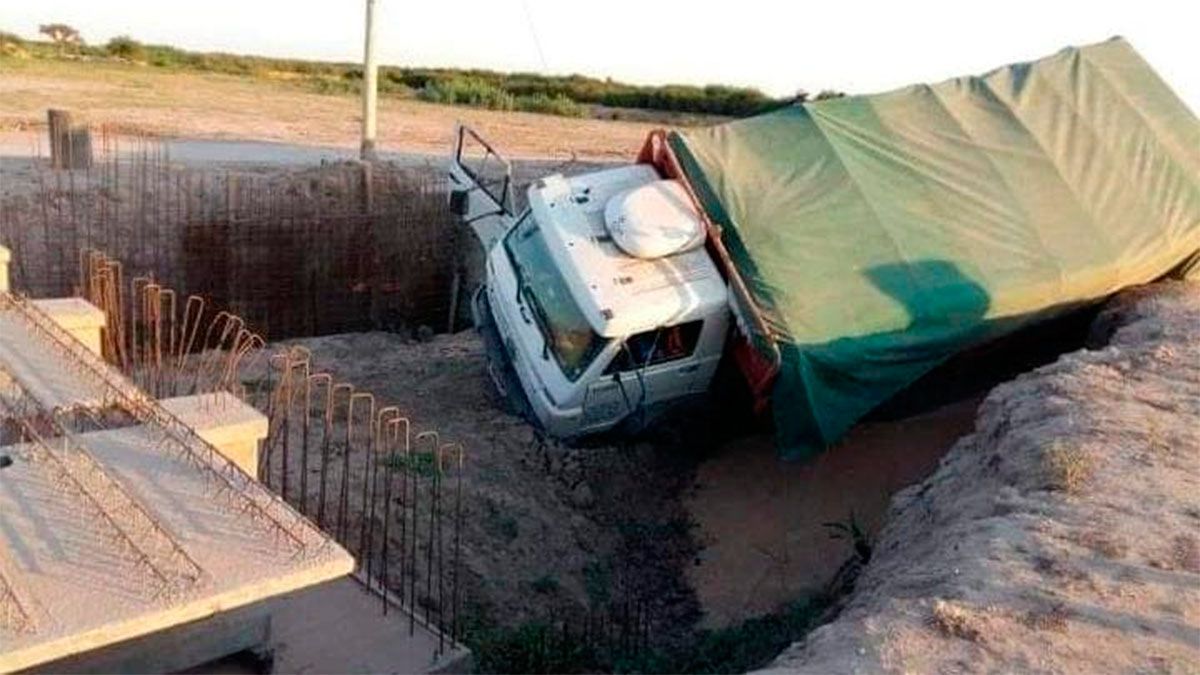 Este nuevo siniestro sucedió pasadas las medianoche de este miércoles, cuando un camión con acoplado cargado con cereal, que se dirigía desde Quimilí, con destino a la provincia de Córdoba, cayó pesadamente en un desnivel de importantes proporciones que existe sobre la obra en construcción del puente.