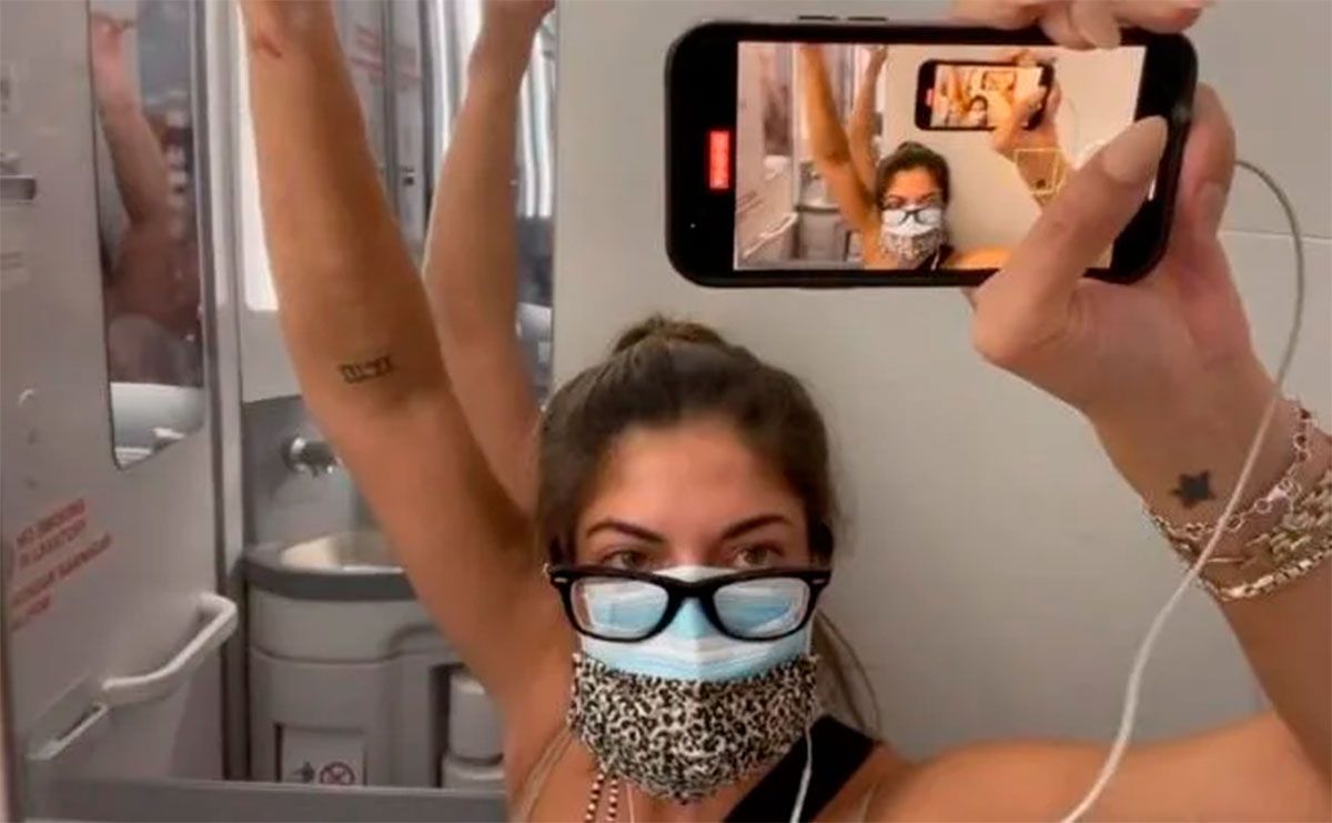 Una mujer detectó ser caso positivo de covid-19 en el aire y decidió refugiarse en un baño del avión para evitar el contagio de otros pasajeros.