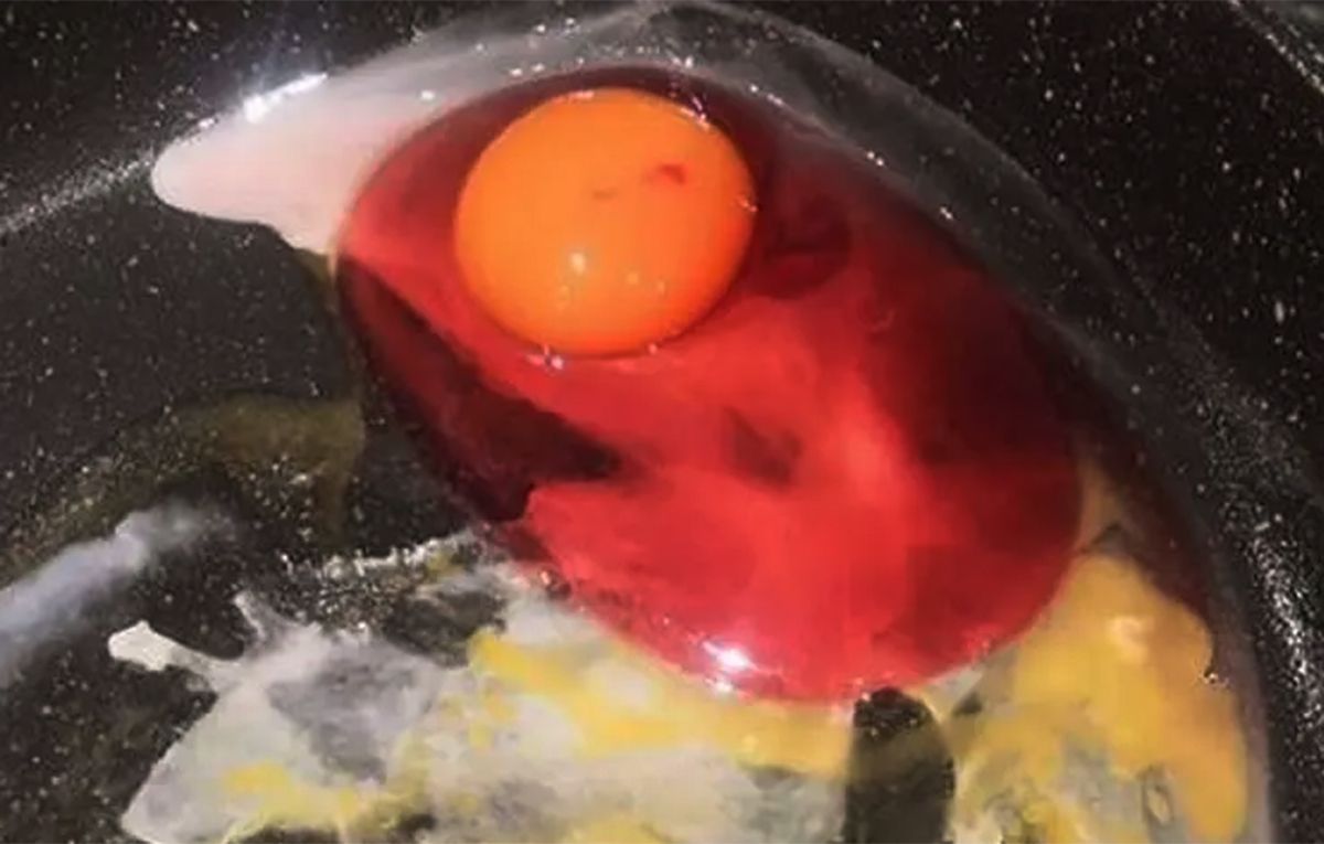 Una mujer encontró al abrir uno que la clara era de color rojo, le sacó una foto que compartió en las redes en donde la alertaron del peligro.