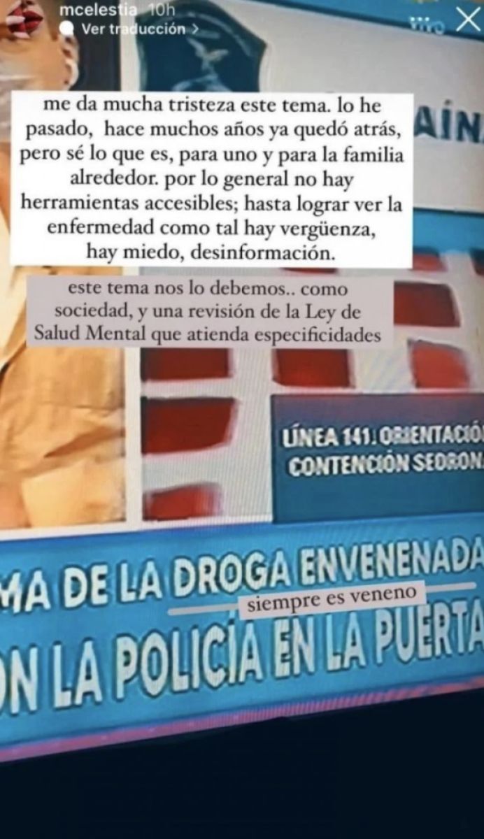 "Me da mucha tristeza este tema porque lo he pasado... Hace muchos años, ya quedó atrás... Pero sé lo que es, para uno y para la familia, el alrededor...", contó, en primera persona, a través de sus stories de Instagram.