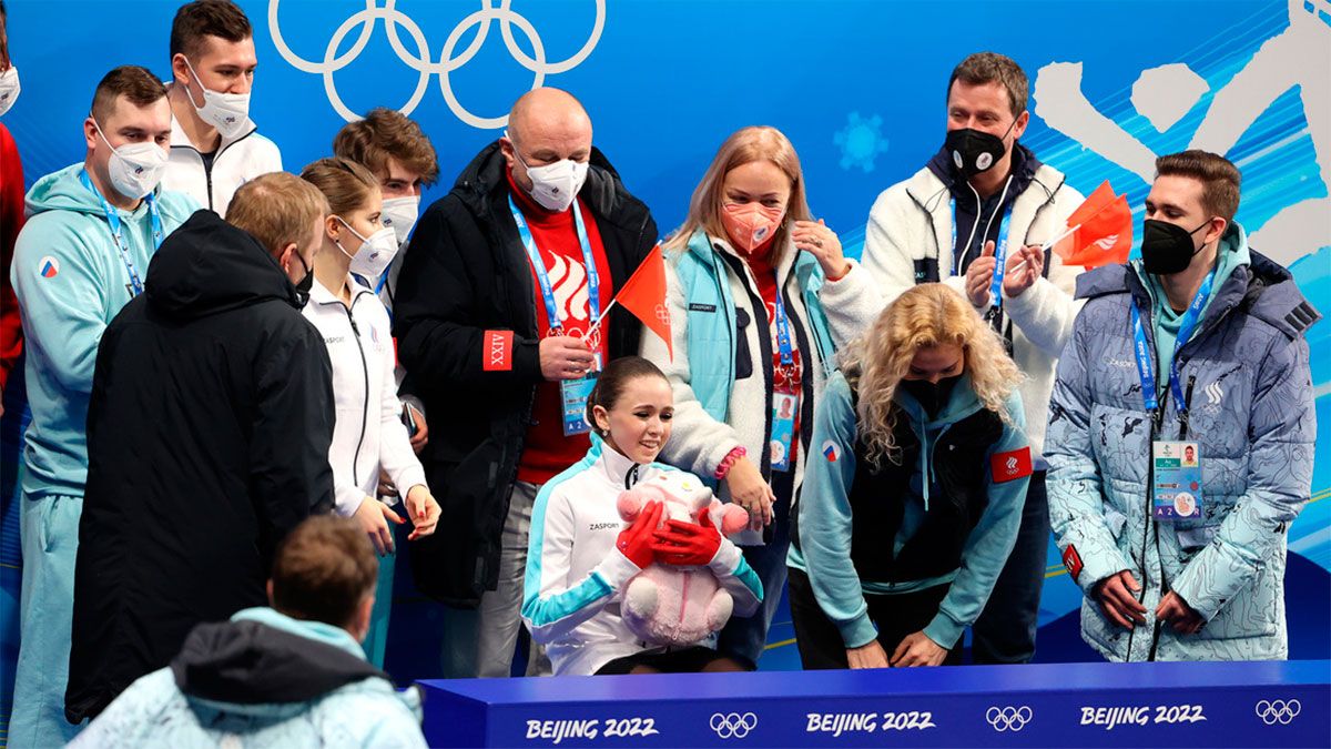 La primera prueba olímpica en Pekín 2022 para ella fue la competición por equipos. Valíeva interpretó dos programas y ganó ambos (al recibir 90,18 puntos y 178,92 puntos), garantizando la victoria de los patinadores rusos. La actuación de la patinadora se ganó el amor del público, que notó no solo la pureza de sus movimientos, sino también percibió su gran capacidad artística.