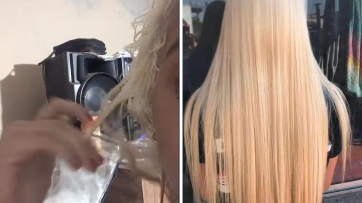 Minutos después de realizarse el tratamiento su pelo comenzó a desprenderse hasta quedar pelada.