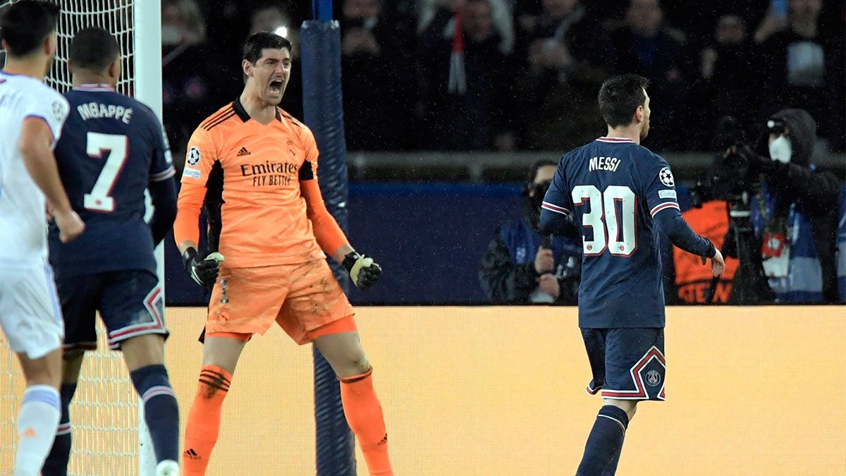 Lionel Messi tuvo la gran chance por intermedio de un penal de abrir el marcador en el encuentro entre PSG y Real Madrid por los octavos de final de la Champions League, pero el rosarino no pudo con el arquero Thibaut Courtois.