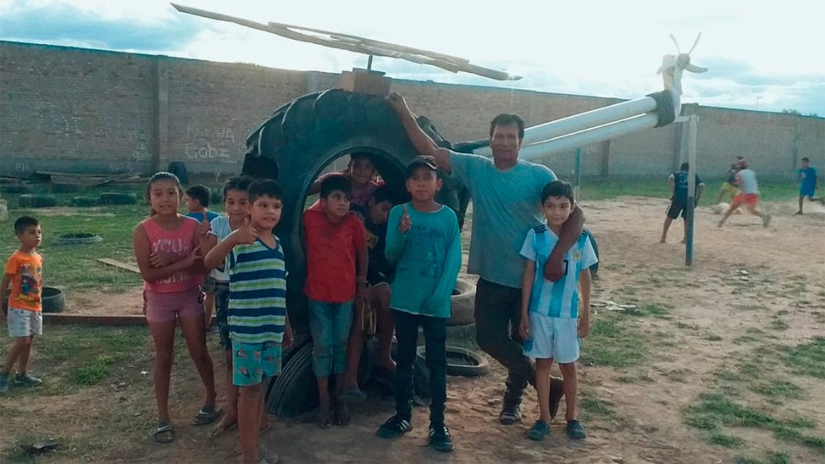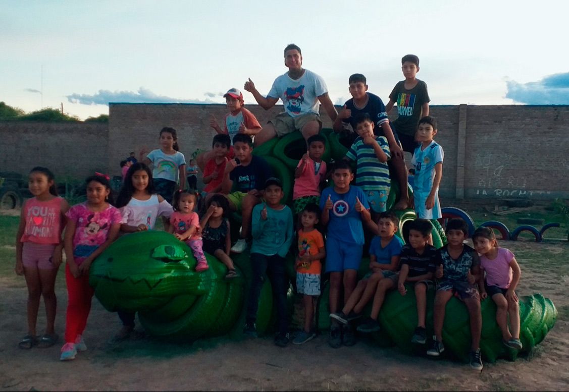 Se trata de un proyecto impulsado por la Asociación Civil de Fomento Vecinal Minka, en el que trabajan junto a vecinos y niños del lugar para juntar neumáticos y otros elementos que luego formarán parte del parque interactivo.