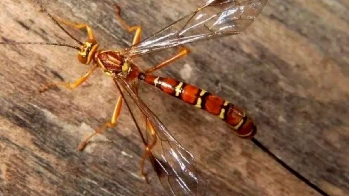El aguijón de la avispa parasitoide llamada Clistopyga crassicaudata no solo es largo sino también muy ancho, en comparación con el tamaño de la especie.