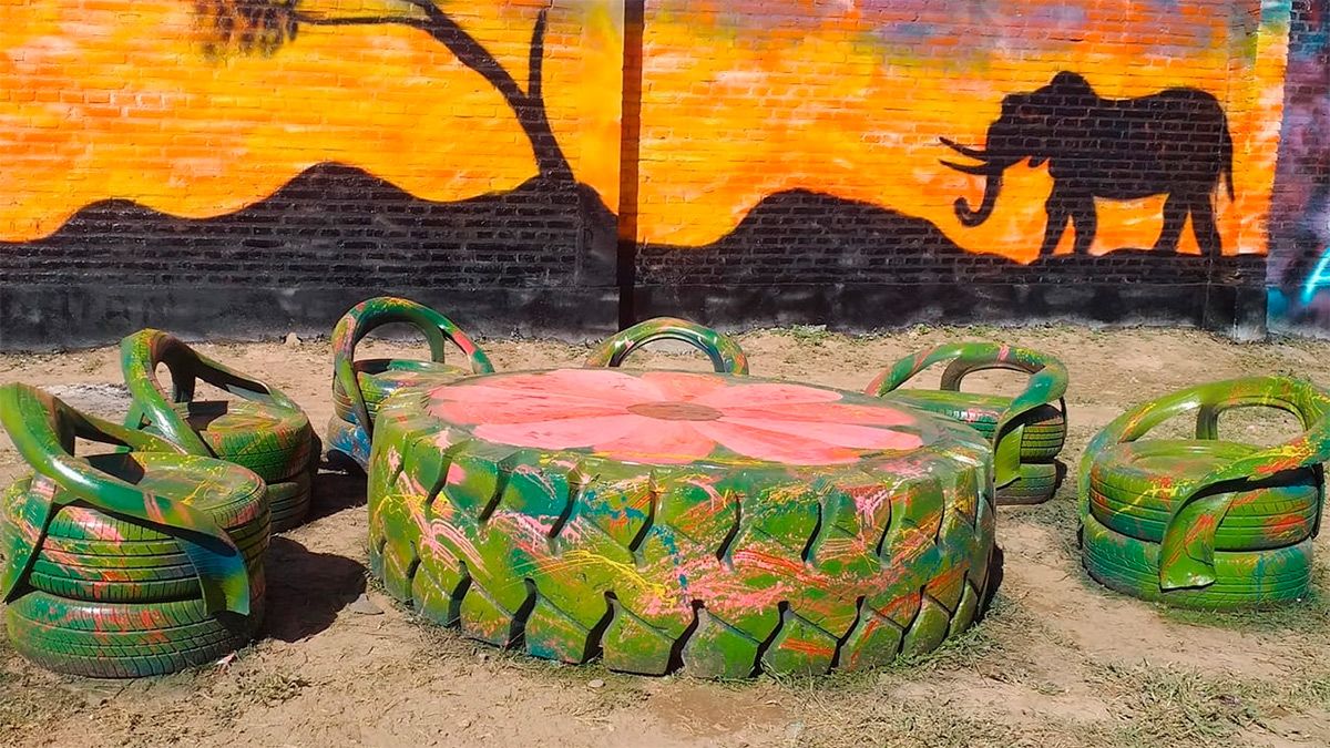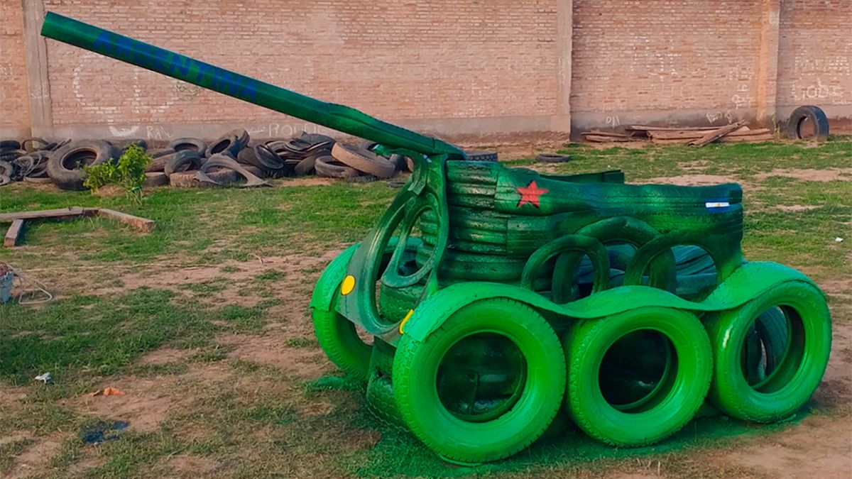 “Primero juntamos dos mil neumáticos con los que hicimos mesas, espacios verdes, 32 juegos de personajes actuales y formas de animales, y luego la gente empezó a colaborar donando más”, explicaba Leo a Canal 7.