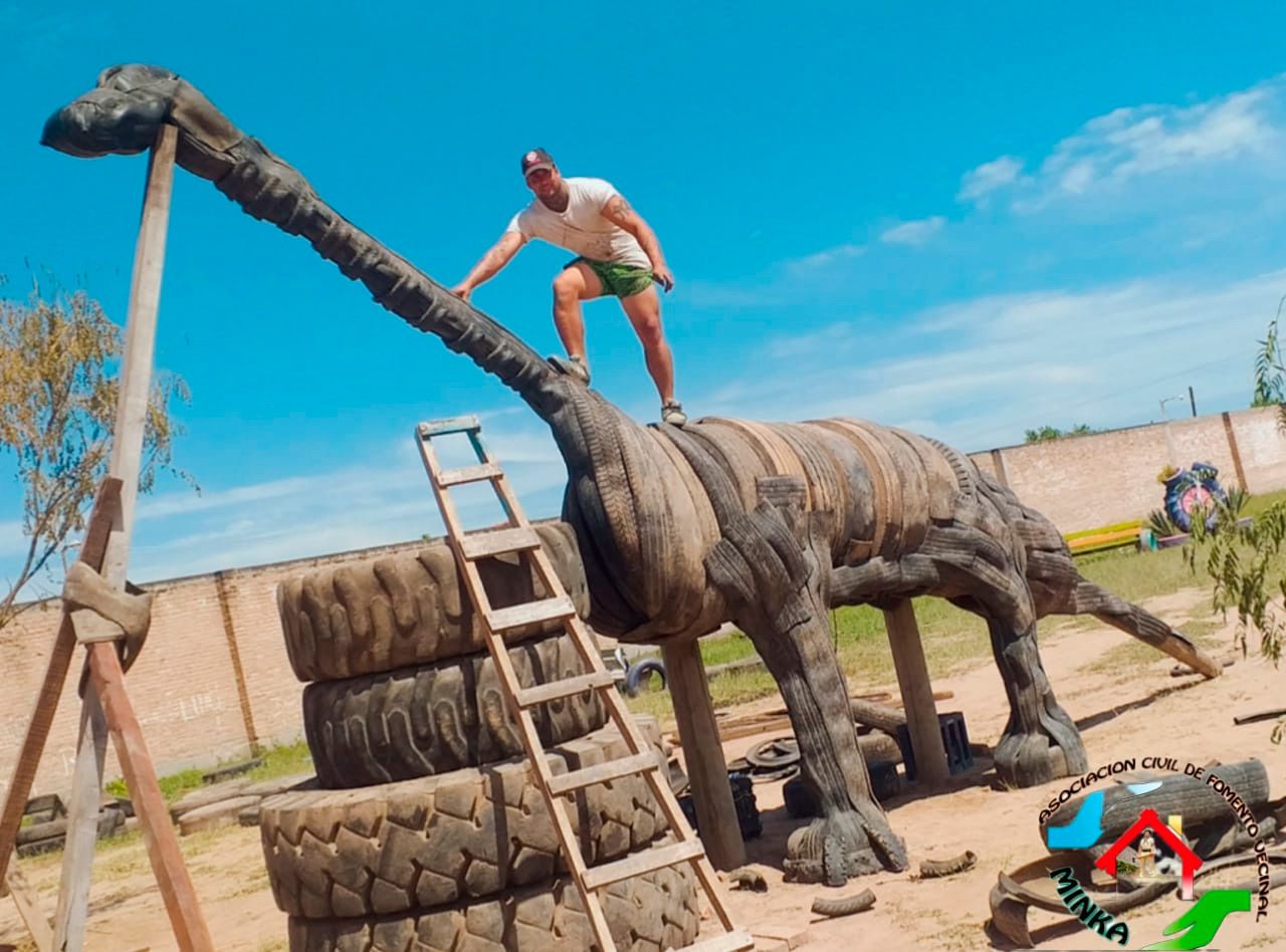 Se trata de un proyecto impulsado por la Asociación Civil de Fomento Vecinal Minka, en el que trabajan junto a vecinos y niños del lugar para reutilizar neumáticos y otros elementos que formarán parte del parque interactivo.