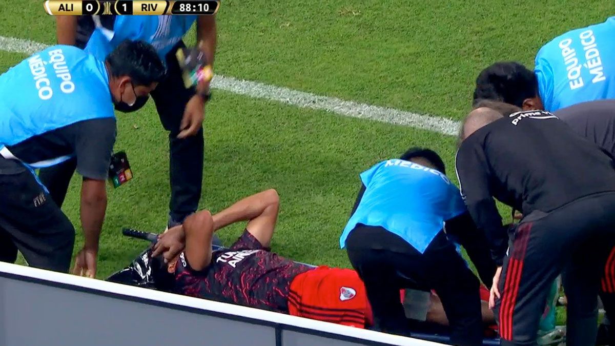 La lesión se produjo a cuatro minutos del final de partido que River ganó 1 a 0 en el estadio Nacional de Lima por el Grupo H.