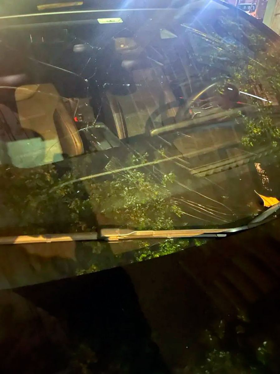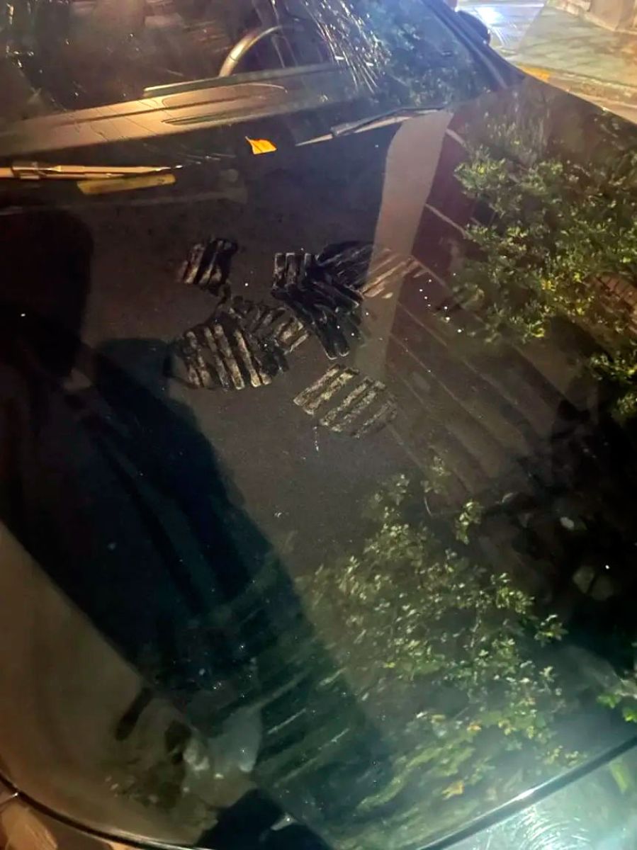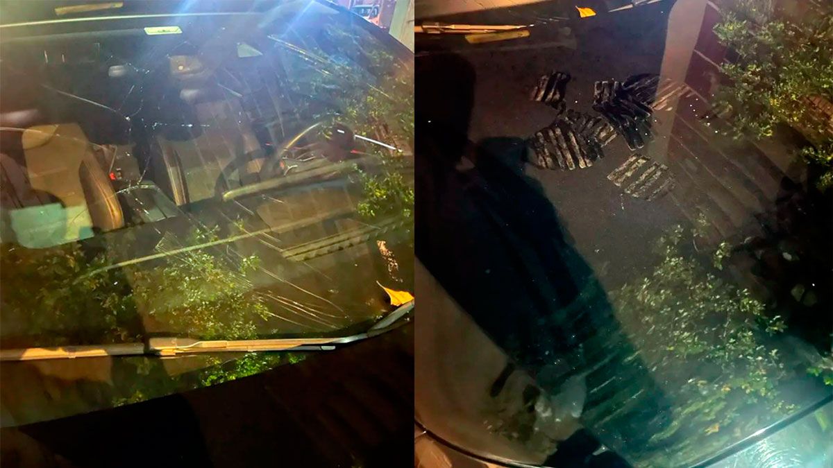 El vehículo de alta gama es de origen alemán y sufrió daños tanto en el capot y como en el parabrisas. Las marcas son claras: se pueden apreciar huellas sobre la chapa y el vidrio astillado y rajado.