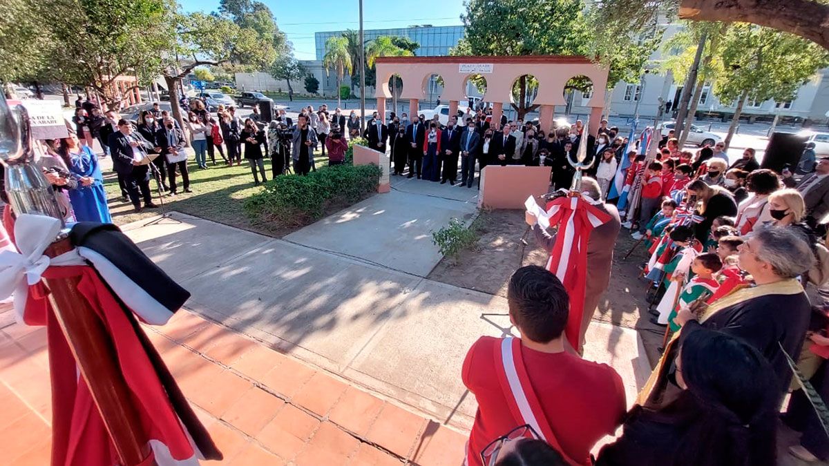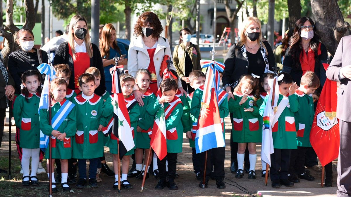 Al iniciar el acto protocolar, se izaron las banderas de la República Argentina, de la República Árabe Siria y la enseña provincial. Luego, se entonaron ambos himnos nacionales y se colocaron ofrendas florales.