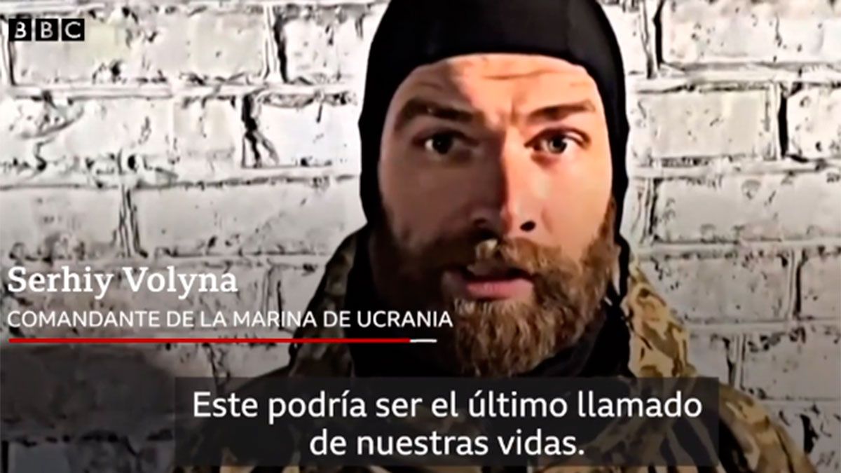Un comandante de la marina de Ucrania está atrincherado en el último reducto de la sitiada ciudad de Mariúpol lanzó un mensaje en video en la madrugada del miércoles diciendo que sus hombres tenían apenas unas horas más de vida.