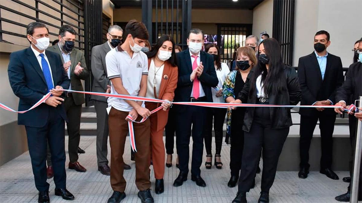 Luego del corte de cintas se realizó un recorrido por el moderno establecimiento que cuenta con dos plantas con 15 aulas, área administrativa, sanitarios para docentes alumnos y para personas discapacitadas. También se agregaron espacios pedagógicos necesarios para la institución como un taller de cocina y apoyatura, una sala de informática, biblioteca, gabinetes y preceptorías, distribuidos en una superficie cubierta de 1648 metros cuadrados y un patio cubierto de 650 metros cuadrados.