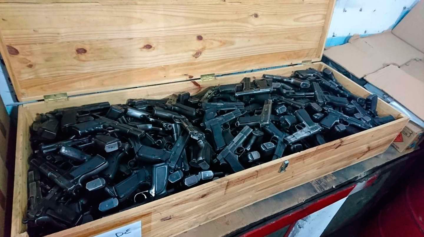 Una de las imágenes más representativas del problema fue registrada en 2020 en la Armería Central, de la Unidad Regional I (UR1), en la ciudad de Santa Fe. Se trata de dos cajones de madera con una gran cantidad de pistolas sin clasificar en su interior.