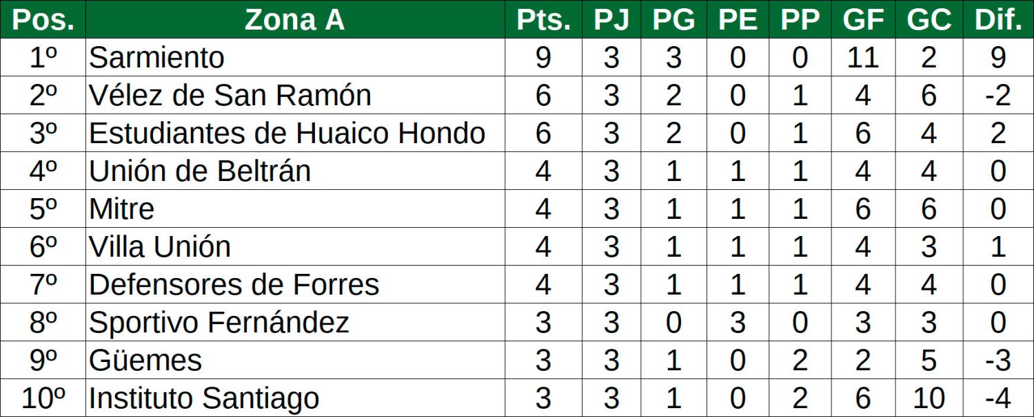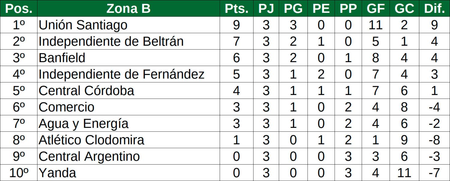 Con este resultado Mitre acumula 4 puntos y se acomodó en la sexta posición de la Zona A, mientras que Central Córdoba, también con 4 unidades, subió a la quinta ubicación de la Zona B.