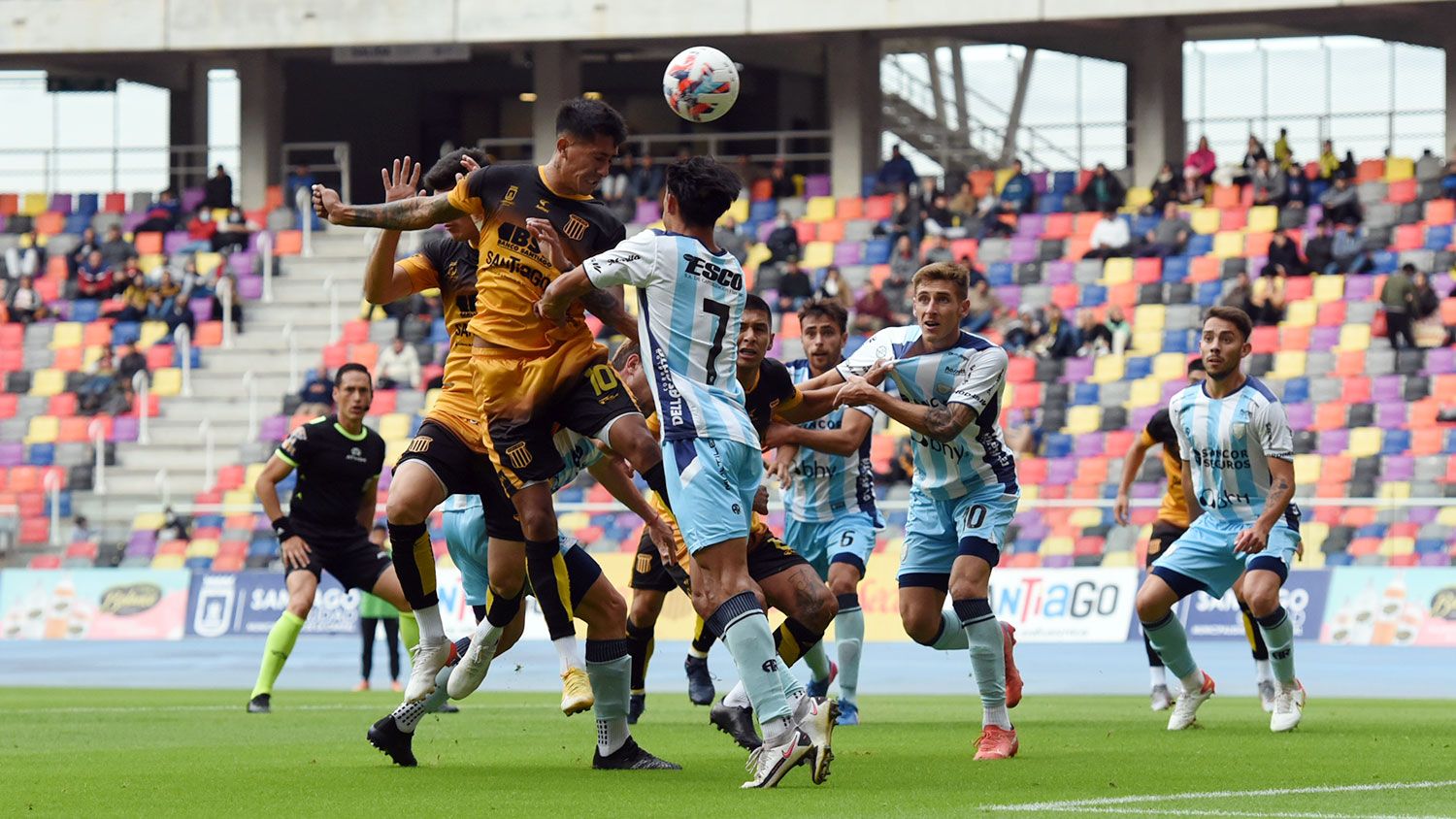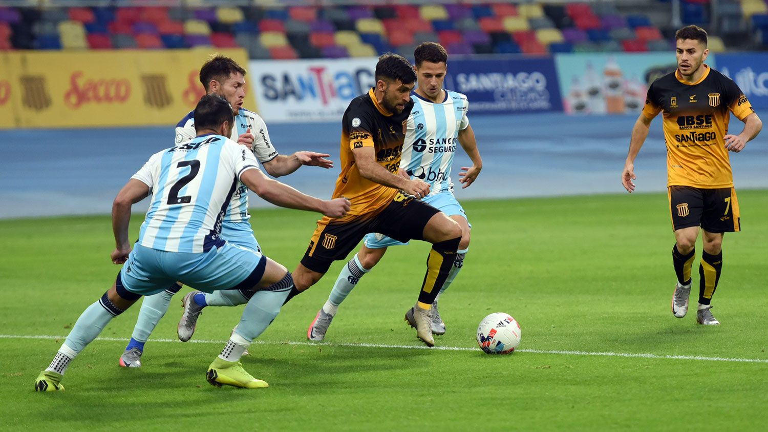 El Aurinegro adelantó sus líneas, se hizo dueño total del balón y generó muchas situaciones de peligro. Su premio llegó cerca del cierre; a los 41 minutos Guido Vadalá controló por izquierda hacia su pierna hábil y sacó un remate preciso al segundo palo.