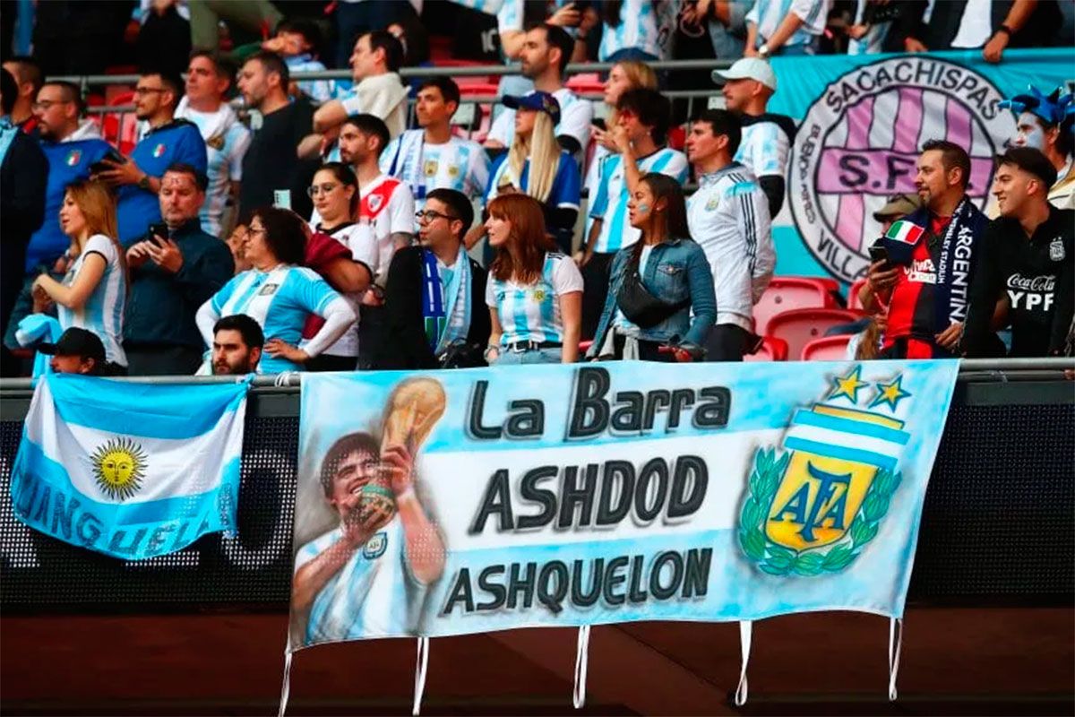 Tampoco faltaron las banderas y los cánticos en honor al ex Argentinos Juniors, Boca, Barcelona, Sevilla y Newell's.