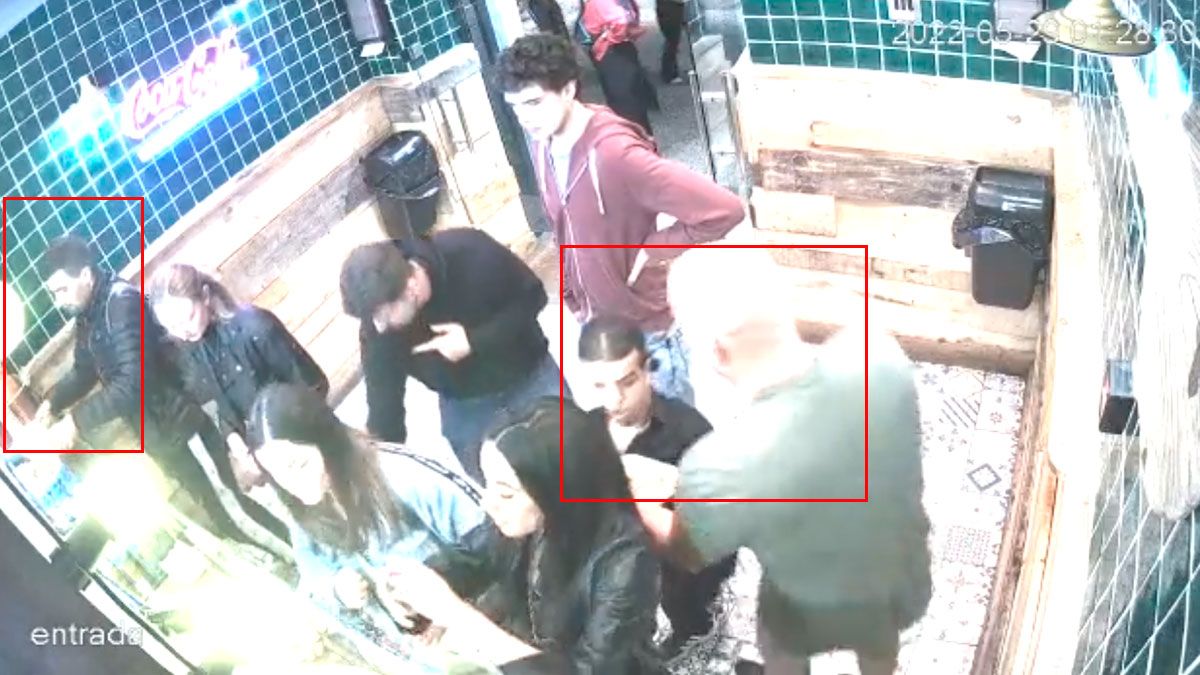 Luego cruza el pequeño local y le aplica un cabezazo a otro joven que parecía ser un cliente esperando.