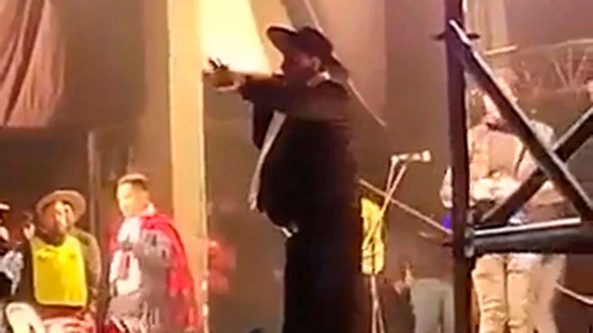 En esta oportunidad, el cantante de folclore se encargó de cerrar la noche frente a cientos de personas. Como el show musical se extendió más de lo que estaba previsto por la organización del evento, un policía se subió al escenario para frenar el recital. Esta actitud generó el enojo del popular artista.