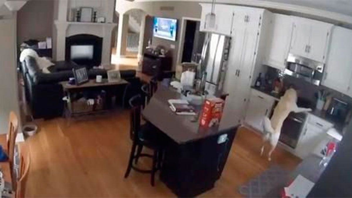 El extraño incidente ocurrió el viernes pasado a la mañana en Parkville, en las afueras de Kansas City y quedó registrado por las cámaras de seguridad de la vivienda. Obviamente, las imágenes se hicieron virales.