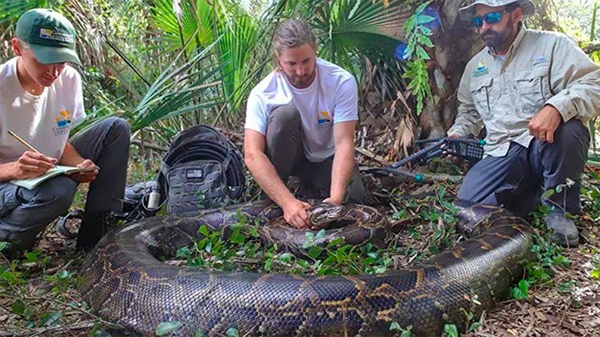 El reptil gigante resultó ser una hembra de 5,4 metros de largo y de 97 kilos, superando así en 13,6 kilogramos el peso de la pitón más grande encontrada anteriormente en el estado.