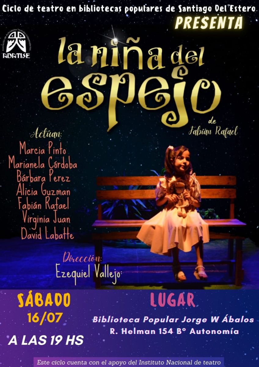 Este sábado 16 de julio a las 19 hs se realizará la puesta en escena de la obra “La niña del espejo” en la Biblioteca Popular Jorge Washington Ábalos, ubicada en la calle Romualdo Gauna 154 del Barrio Autonomía.