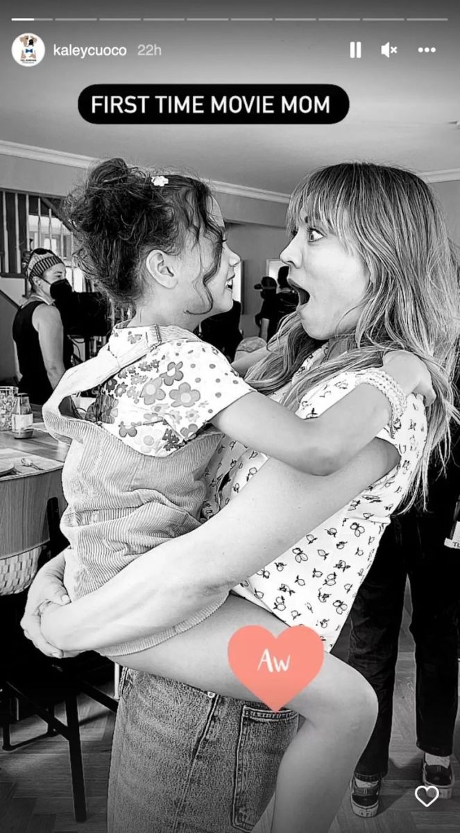 Cuoco, quien también se desempeña como productora, usó sus Stories de Instagram para publicar una foto del set de Berlín con la joven actriz que interpreta a su hija. Ella subtituló la linda foto con "mamá por primera vez en el cine", con un GIF de corazón en la parte inferior que dice "Awww".