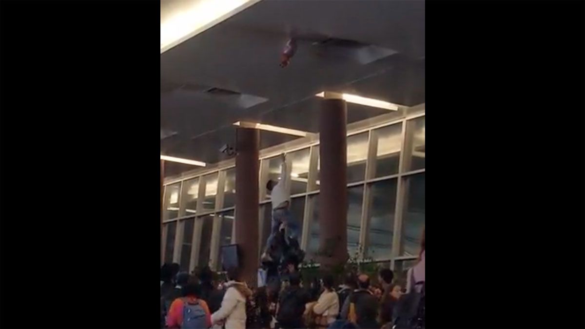 La escena fue grabada y compartida en Twitter en donde hubo más de 50 mil likes sobre la tarea mancomunada para lograr rescatar el globo y hacer que la pequeña que lo perdió vuelva a sonreir.