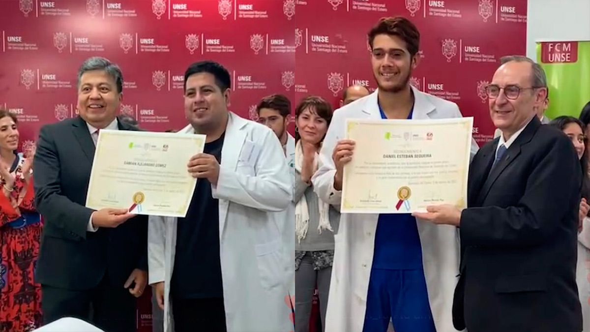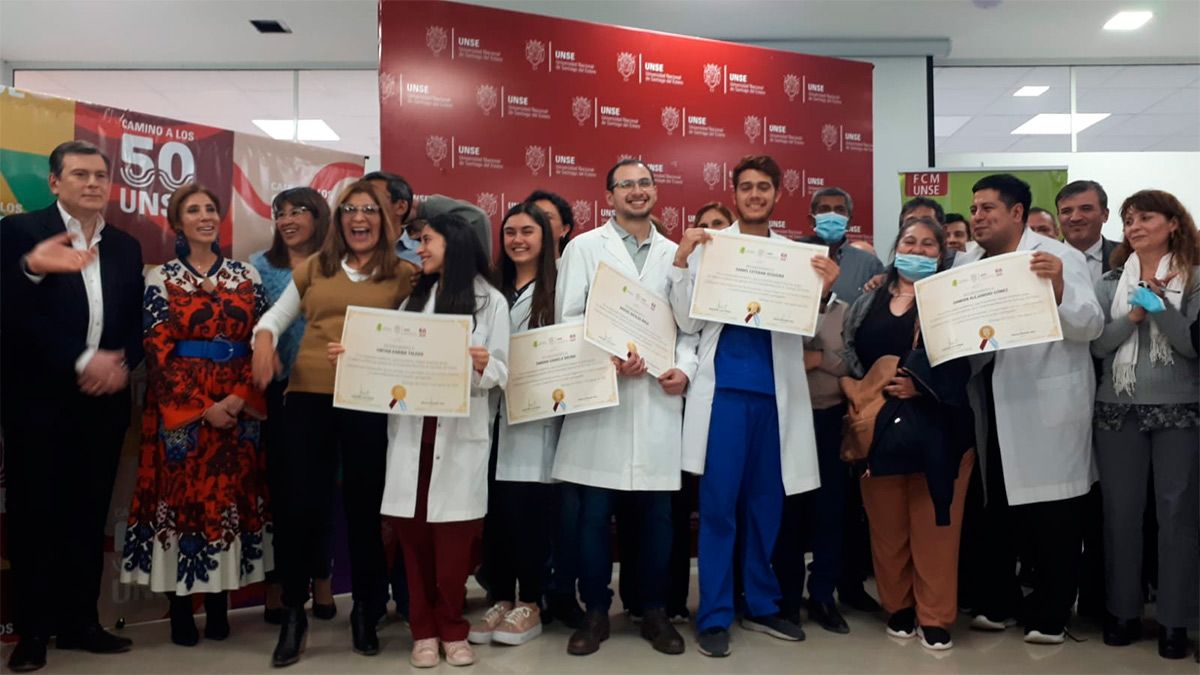 Damián Gómez, Tamara Bruno, Cinthia Toledo, Nahuel Ávila y Daniel Sequeira aprobaron la Evaluación Clínica Objetiva y Estructurada (ECOE), última instancia de examen y se convirtieron en los primeros médicos y médicas recibidos de la universidad pública santiagueña.