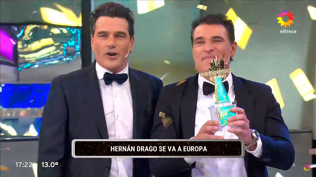 Para desempatar, la conductora sumó a los camarógrafos para participar de la deliberación y empezó una cuenta regresiva. “Quién se va de viaje y gana el gran trofeo de la Puerta de los Parecidos es...”, anunció Laurita, y le cedió el honor al modelo. “Se va a Europa Hernán Drago”, sentenció el modelo. Y no hablaba en tercera persona.