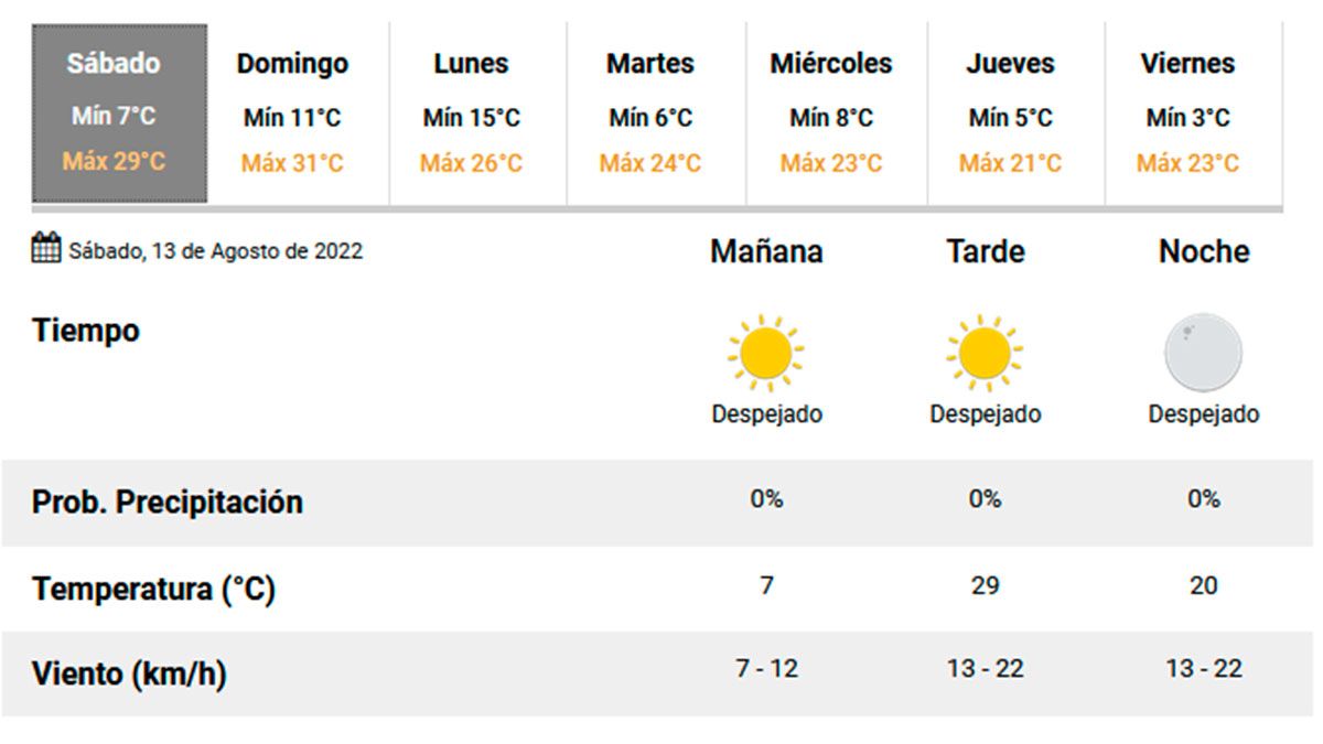 Por su parte, para el domingo se espera una máxima superior a los 30 grados y un cielo parcialmente cubierto.