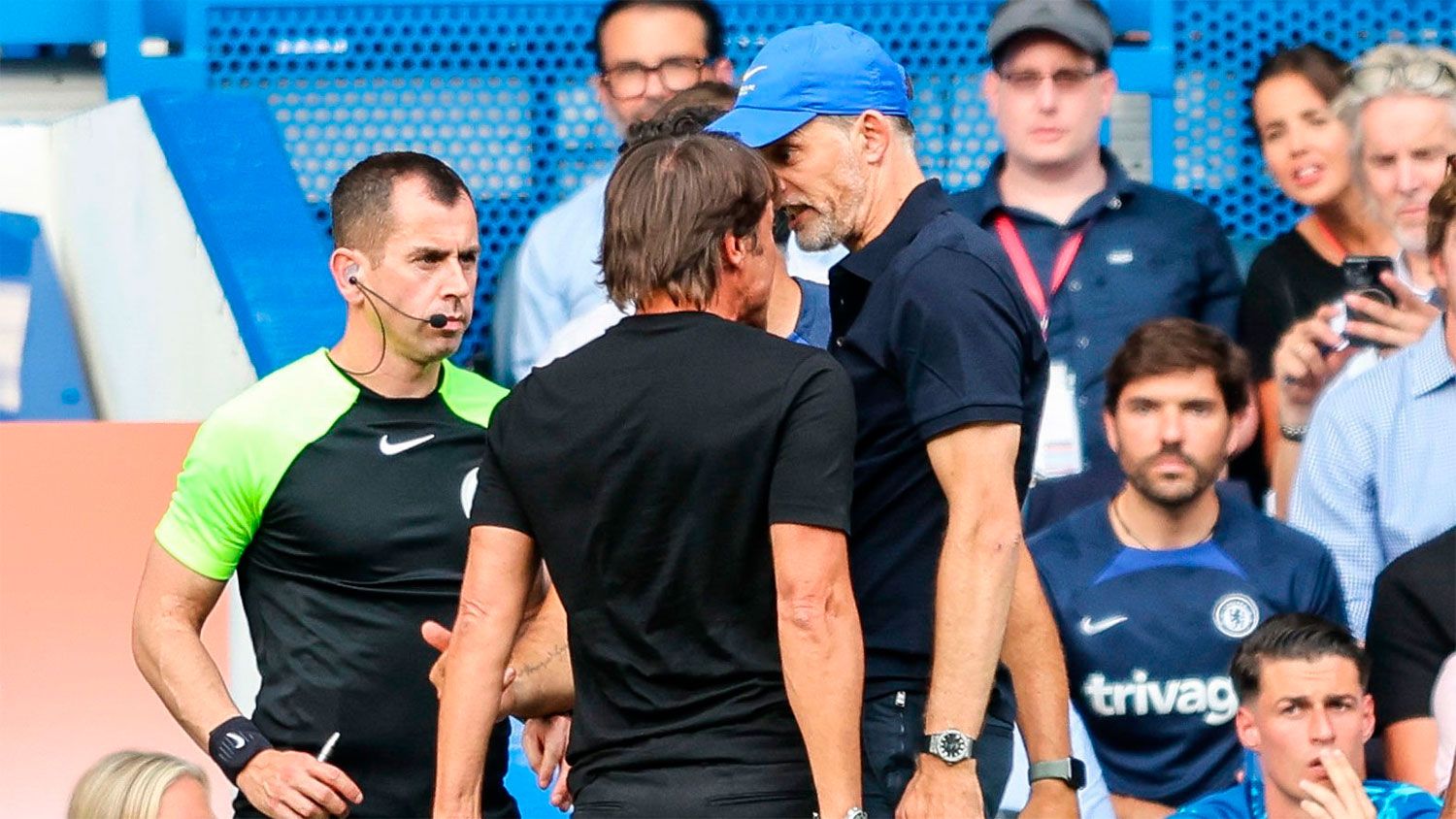 El primer indicio de que ambos entrenadores no se estaban llevando bien se produjo después de que Conte celebrase el empate (parcial 1 a 1) del danés Pierre-Emile Hojbjerg cerca de la zona técnica de Tuchel, lo que desencadenó la ira del alemán.