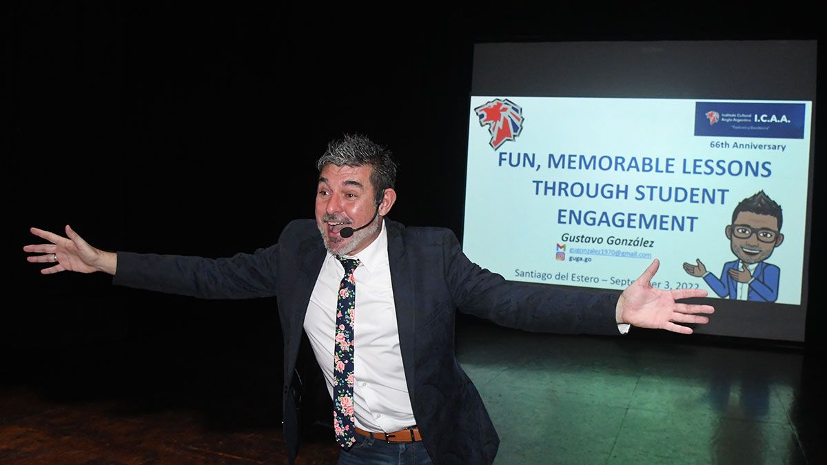 La Directora del Instituto Cultural Anglo Argentino, Lic. Ana Cáceres, destacó la importante actividad para los profesores de inglés que se sumaron a la propuesta realizada en el Paraninfo de la UNSE. "Es importante dar oportunidades a los que no las tienen, por lo que en muchas ocasiones tener una capacitación con alguien como el Profesor Gustavo González es difícil, por eso lo estamos haciendo”, sostuvo sobre la jornada que se suma a las actividades que la reconocida institución viene realizando por su aniversario número 66.