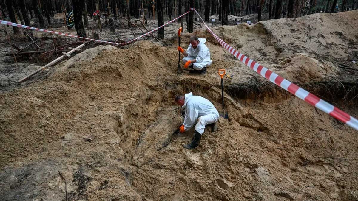 “Se están descubriendo fosas comunes en Izium después de ser liberada de los rusos. Hay hasta 440 tumbas sin identificar”, explicó este viernes el Ministerio de Defensa ucraniano en su cuenta de Twitter.