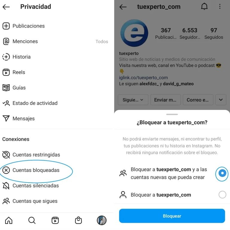 A diferencia de otras opciones como Silenciar o Restringir en Instagram, el concepto de bloqueo es el más fácil de distinguir, ya que significa cortar cualquier tipo de contacto con la persona en cuestión.